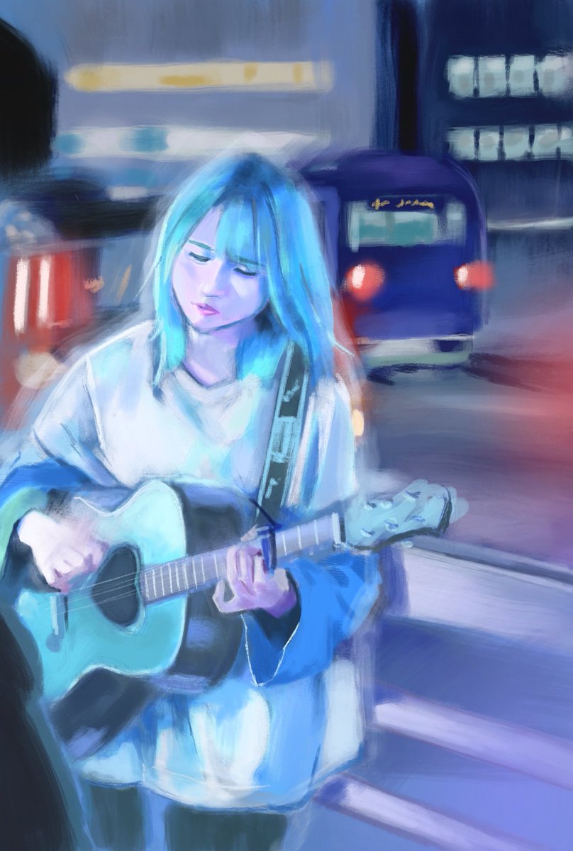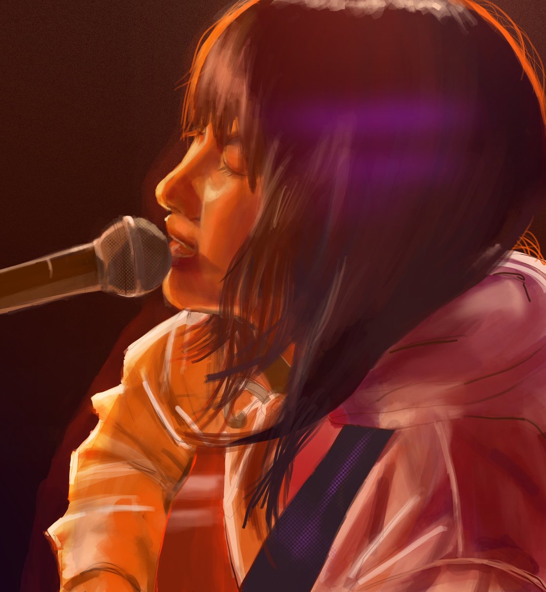 佐藤千亜妃さんを描きました。LIVEのときの写真や過去の画像などを参考にしながらLIVEの臨場感や感動をを私なりに表現してみました。 花曇りのリリースも楽しみにしています☺️ #佐藤千亜妃 #今月の佐藤千亜妃さん絵 #イラスト #illustration