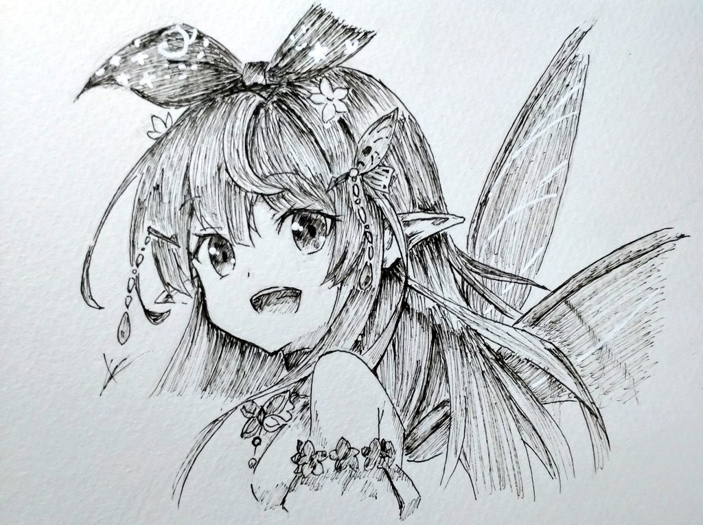 Pomu Rainpuff pen drawing. LazuLight 1st Anniversary ver. Reproduction. Pomu Rainpuff ペン画 LazuLight 一周年記念ver 模写 #PomuPaint