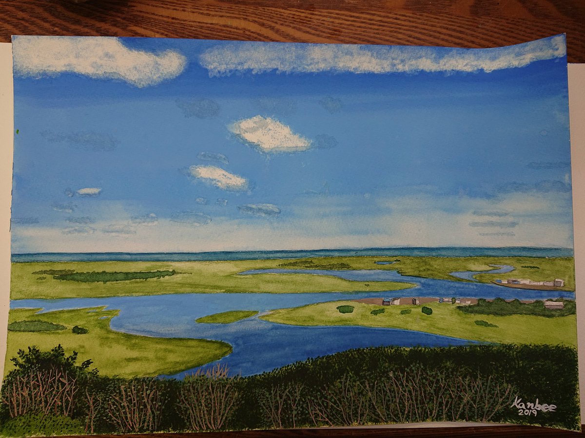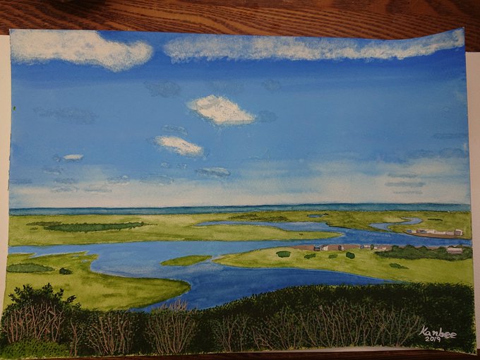 4 27 故郷である浜中町。 霧多布湿原、完成。 #浜中町 #霧多布 #水彩画 19/08/27 20:48