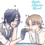 16 68 今月も開催ありがとうございます💛💜 #燭へしワンドロワンライ お題「美味しいもの」 二振りで分けあって食べるものは全部美味しい。 21/11/11 23:00