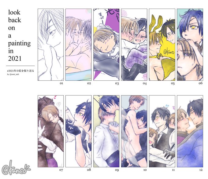 4 19 #.2021年の絵を振り返る テンプレお借りしました🦊 色んな燭へしたくさん描きました💛💜 21/12/14 12:40