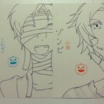 #メメリ絵 _:(´ω`」 ∠):_ 首が…オワタ\(^o^)/ でも人の色塗りは終わったんだ…(^p^)ヘヘッ 後は背景とミニちゃんを…_| ̄|○ ガクッ