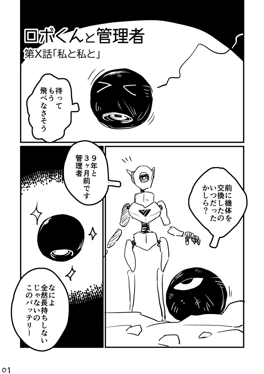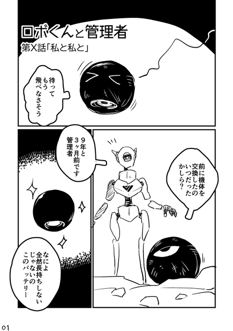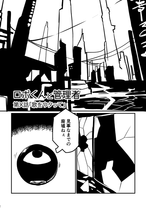 オリジナル漫画、「ロボくんと管理者」です。 ロボットとAI搭載ドローンの2人が旅をするお話です。短編集なので何話から読んでも大丈夫です(ちなみにこれは第一作目にあたります)。 全9ページ。 #オリジナル #漫画が読めるハッシュタグ (1/3)