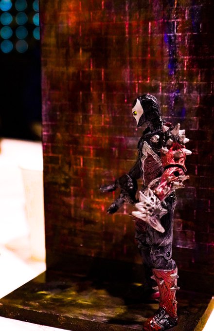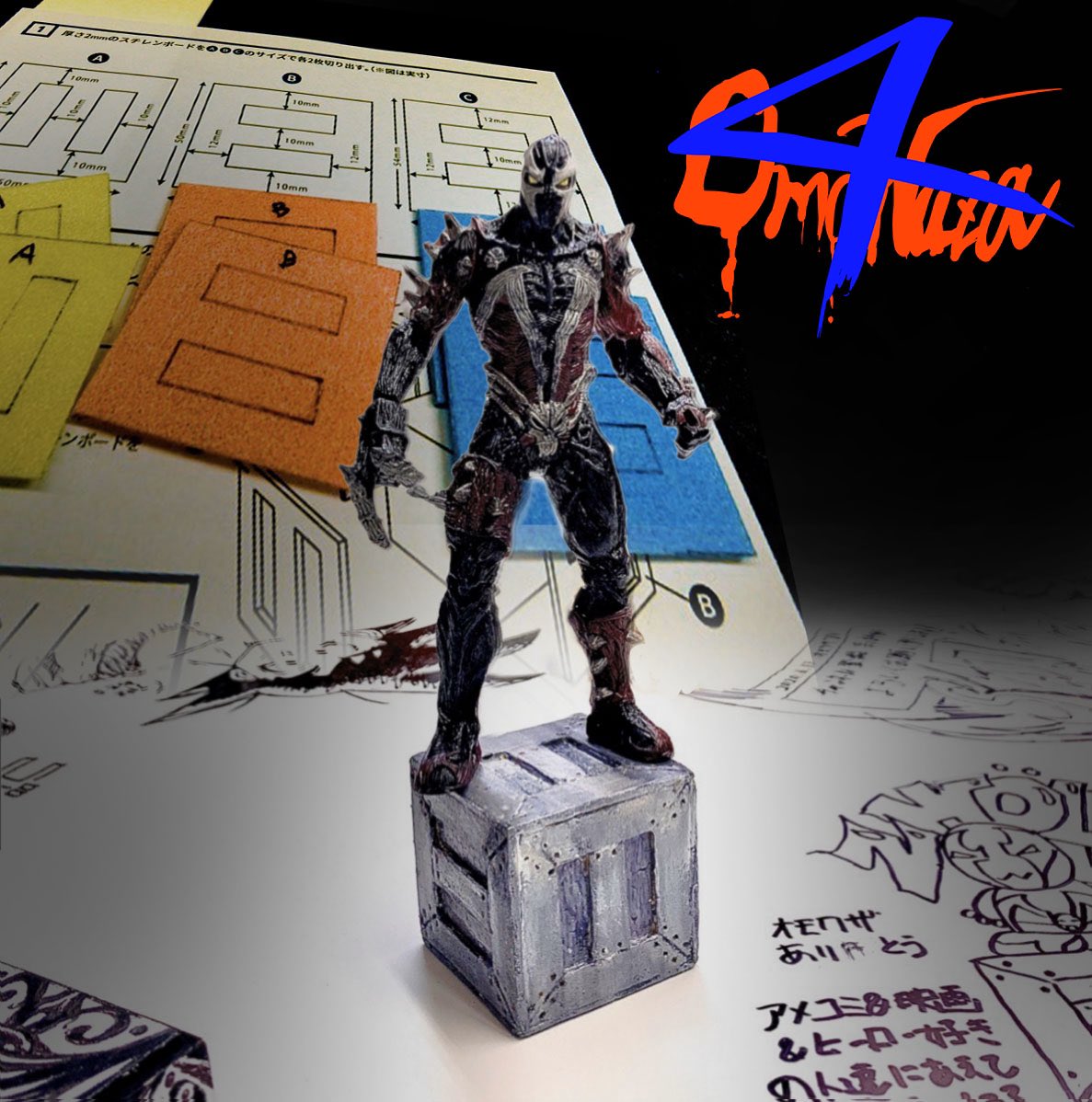 満を持して #zwölf 様にて開催された、今回の #オモワザ4 。講師@WoodyBook_s50 さんのご指導の元、愛するスポーン氏に合わせたカラーリングの木箱を作成しました。ありがとうございました最高に楽しかった!余韻すごい!あまりのことに喜びのロゴ描いたわ #オモ写 #ジオラマ作成
