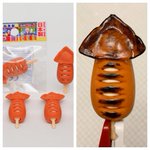 100均の消しゴムを塗ってみてる。てっぺんの三角(えんぺら)だけ塗ってみたけどいいかんじになりそう #イカ焼き #ダイソー #塗装 #マニキュア塗装 #オモ写 #クリアレッドを買ったら続きやる