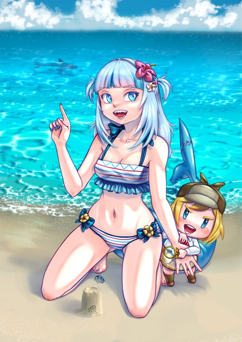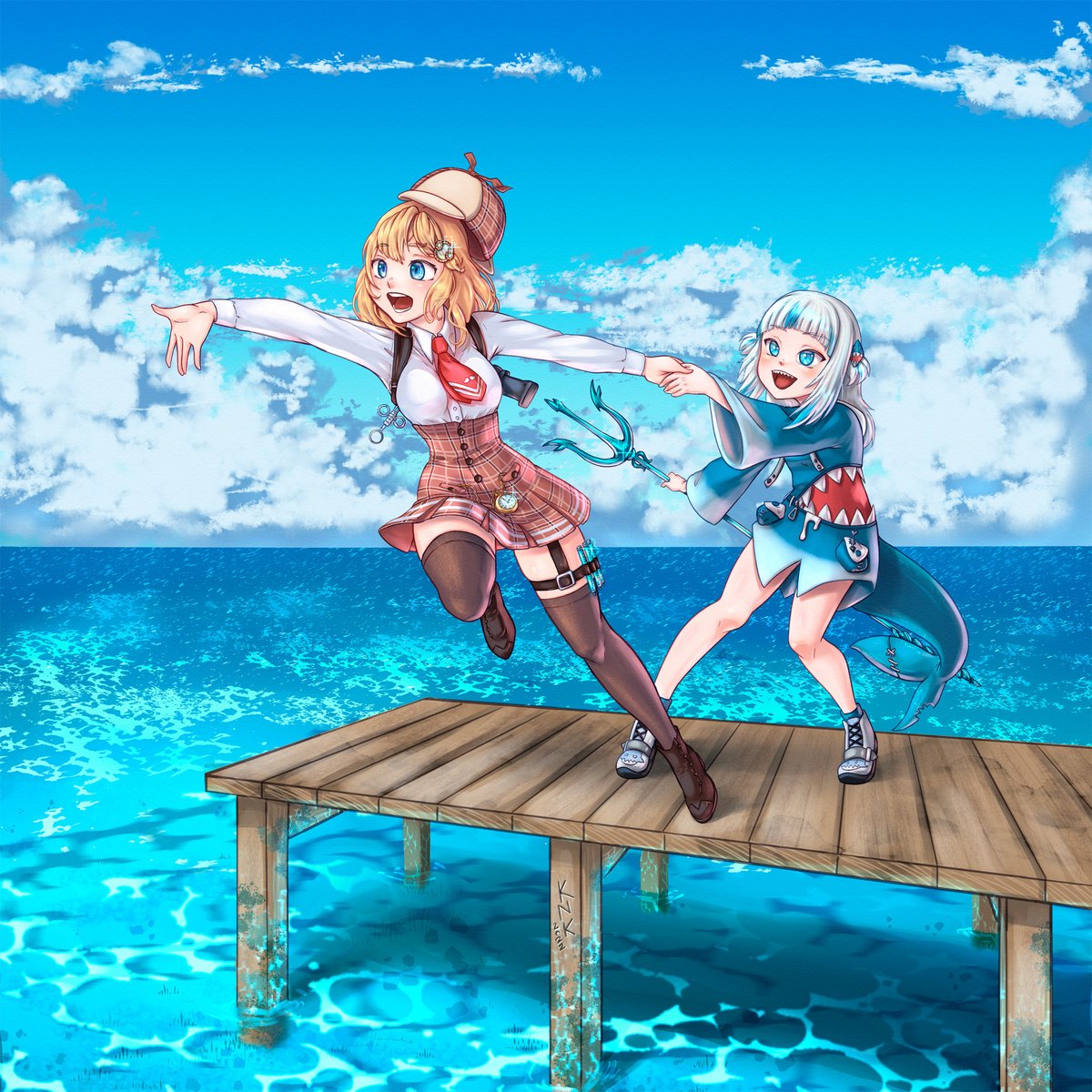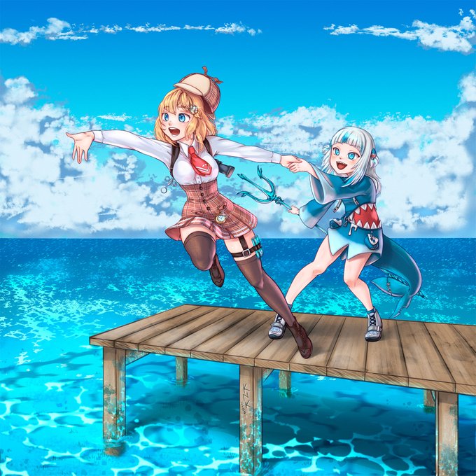 Still strating with the idea of doing something simple and then... escalation... but I'm happy with how my dear gremlin and shork came out. AmeSame ftw. #ameliaRT #gawrt #watsonamelia #gawrgura #hololive #hololiveEnglish #hololivefanart #fanart #clipstudiopaint #amesame
