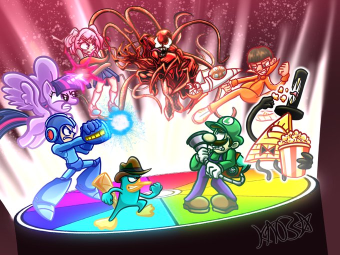 BILL CIPHER SITS BACK AND ENJOYS THE FIGHT! Now give me a PURPLE character on the hero side and tell me what they should be doing! twitter.com/kaoskurvea/sta…