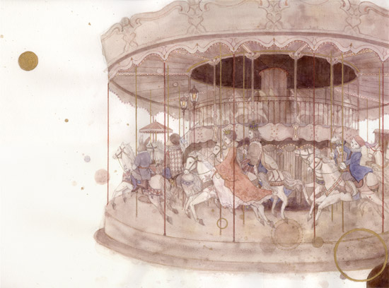 #今までで作画カロリーMAXの作品上げようぜ たぶんこれ。もう10年以上前の作品だけど… 回転木馬の全体像を描くのがすごく大変だった気がする。 作品も横80cmくらいで、1ヶ月以上かかった。