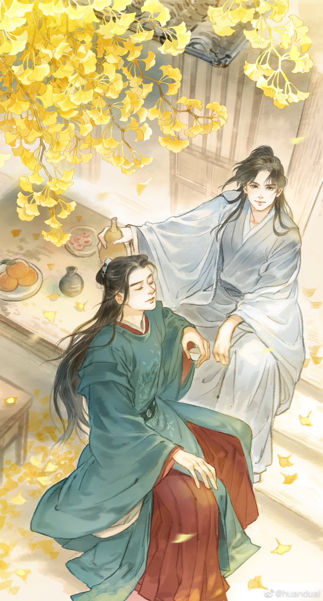 "Watching flowers bloom & fall, clouds come & go. Lao Wen, A-Xu Drink & enjoy the sun." #WenKexing #ZhouZishu #WenZhou #温客行 #周子舒 #温周 #WordofHonor #山河令 Reposted with permission. Pls click 🔗 below to give the artist traffic & 👍. Cr: huandual m.weibo.cn/3195723693/471…