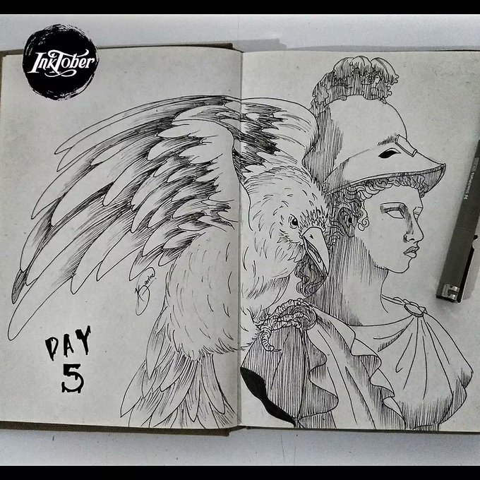 5. Raven "... En el busto de palas, sobre el dintel de mi puerta..." #inktober #inktober2021 #inktober2021raven