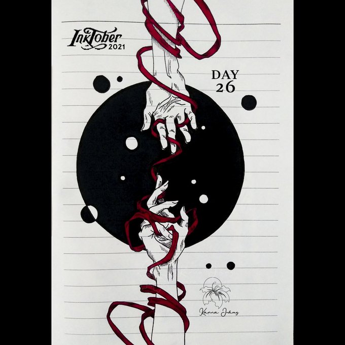 26. Connect When two people were connected by the red thread... #Inktober #inktober2021day26 #inktober2021