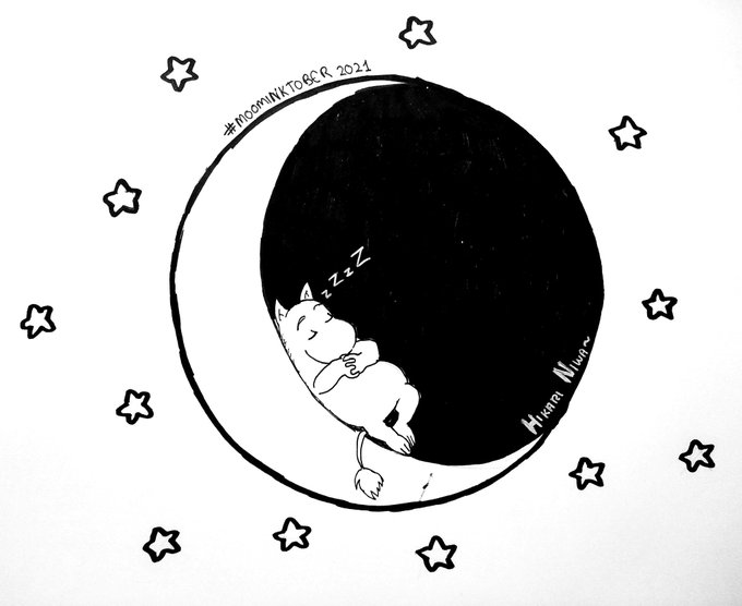 Sweet dreams little Moomintroll. The moon looks so beautiful and... Wait what?!? How did you get there?? 👀💙🌘⭐🌟🌌🌜 #Moominktober2021 Day #23- Moon #Moominvalley #moomin #ムーミン #moominfanart #tintubre #moomink