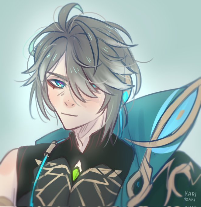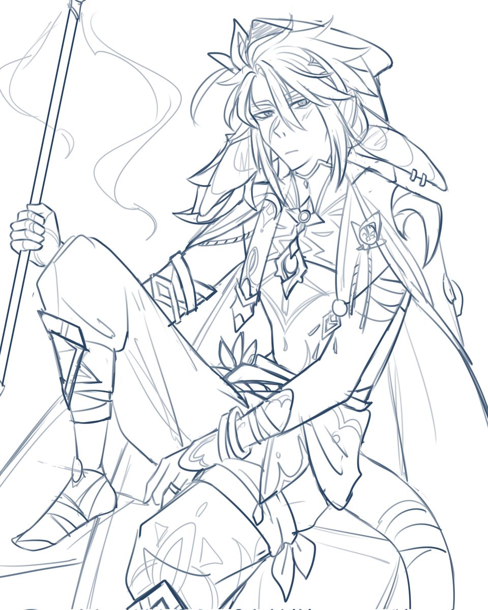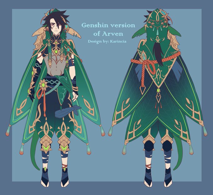 I made Genshin OC He's an anemo vision holder from Sumeru and his weapon is spear It was painfull #Genshinlmpact #genshinoc #genshinimpactfanart #原神