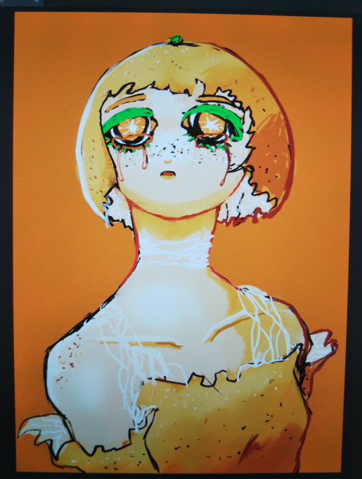 🍊 ラフ←→完成 #オリジナル #イラスト