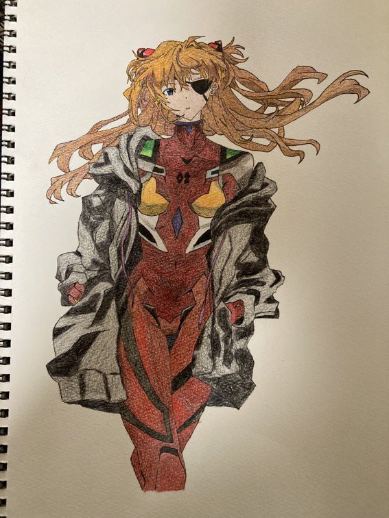 アイコンアスカのリメイクです!当時は12色で描いていたので、24色色鉛筆で全部塗り直しました。 Beforeはリプにあります。 #エヴァンゲリオン #EVANGELION #色鉛筆