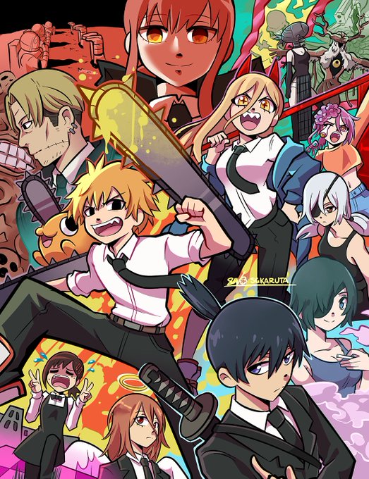 Sharing my Chainsaw Man drawing I did as a print for cons! Thought best to share now since latest chapter just came out. And my goodness it was kickass XDD I personally REALLY like part2 - - #chainsawman #chainsawmanfanart #fanart #artistontwitter #illustration #mangaart #denji