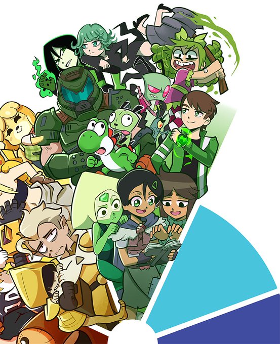 Green section is done!! some really odd combinations here XD Next, LIGHT BLUE character suggestions? - #artistontwitter #colorwheelchallenge #invaderzim #amphibia #disneytvanimation #Peridot #shego #ben10 #fanart