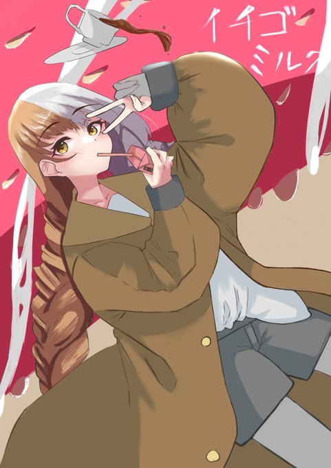 #イラスト #絵 #絵柄が好みっていう人にフォローされたい イチゴミルクを飲むカフェオレちゃん