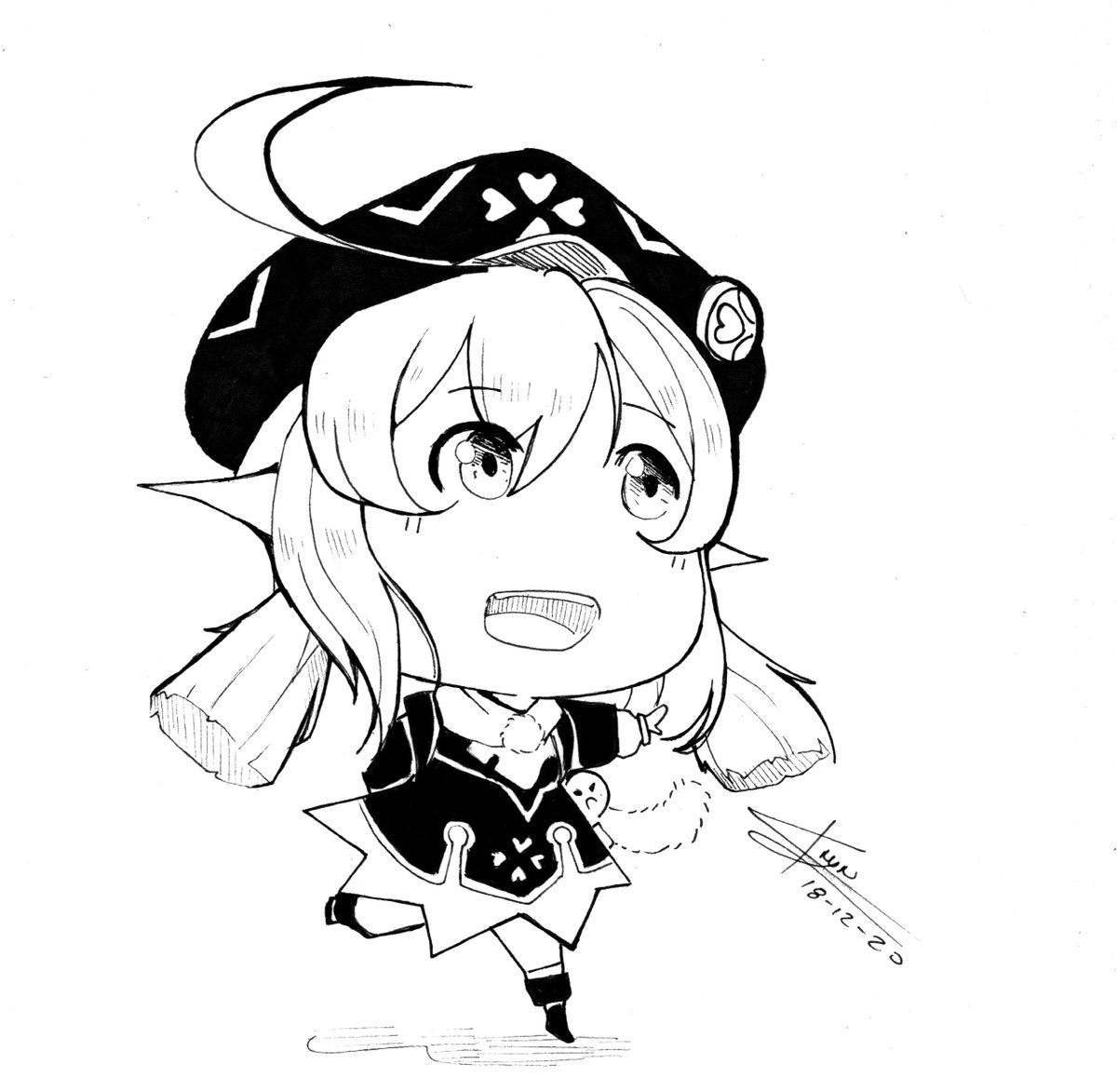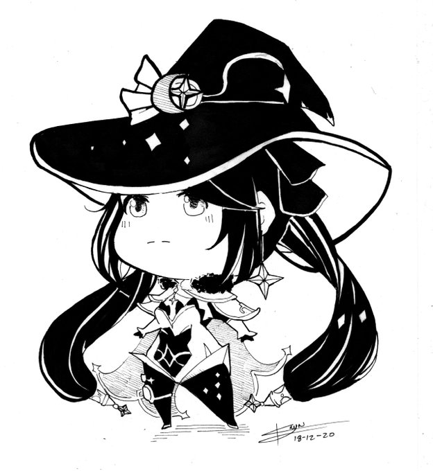 #Mona of #Genshin_Impact this commission is for @GunslingerCrow thank you for commission me! Check your photo in his profile with both original illustrations. #genshinimpactfanart #genshin #fanart #chibi #manga #blackandwhite #ink