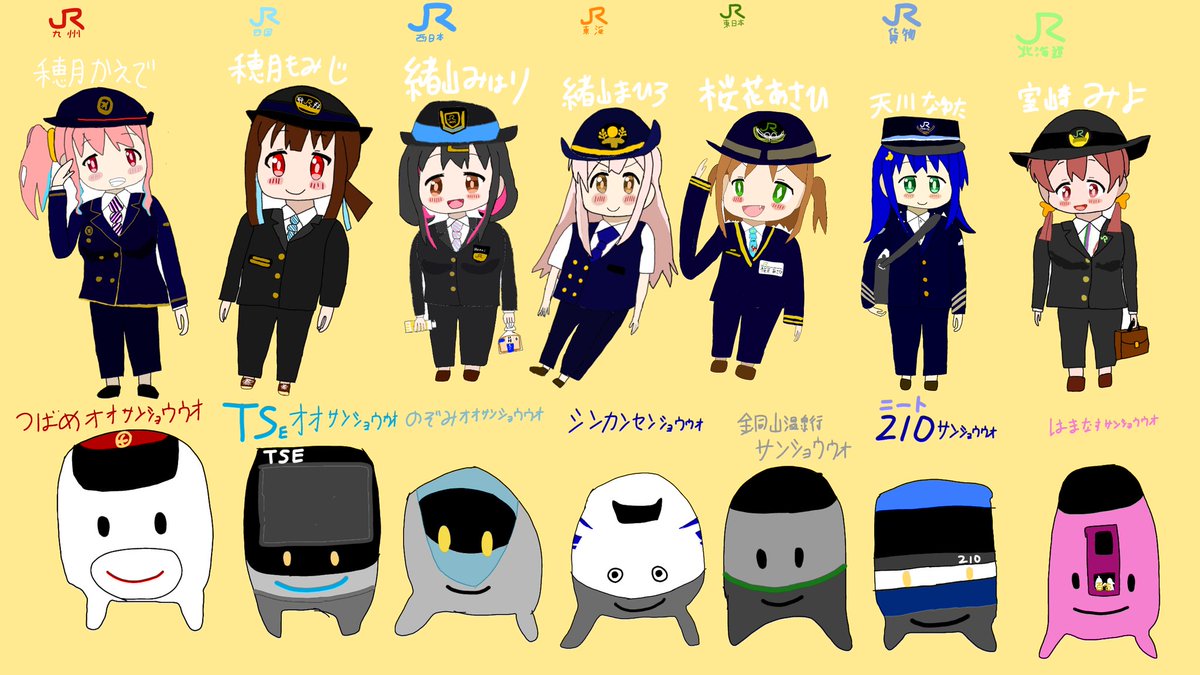 5 15 もみじちゃん (JR四国制服) もみじちゃん言えもみじろうと言えば侍、侍と言えば坂本龍馬、坂本龍馬と言えば四国という事で もみじちゃんはJR四国にしました。 #おにまいお絵描き 23/05/20 12:09