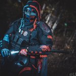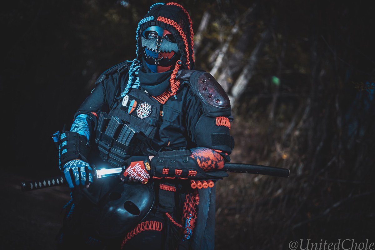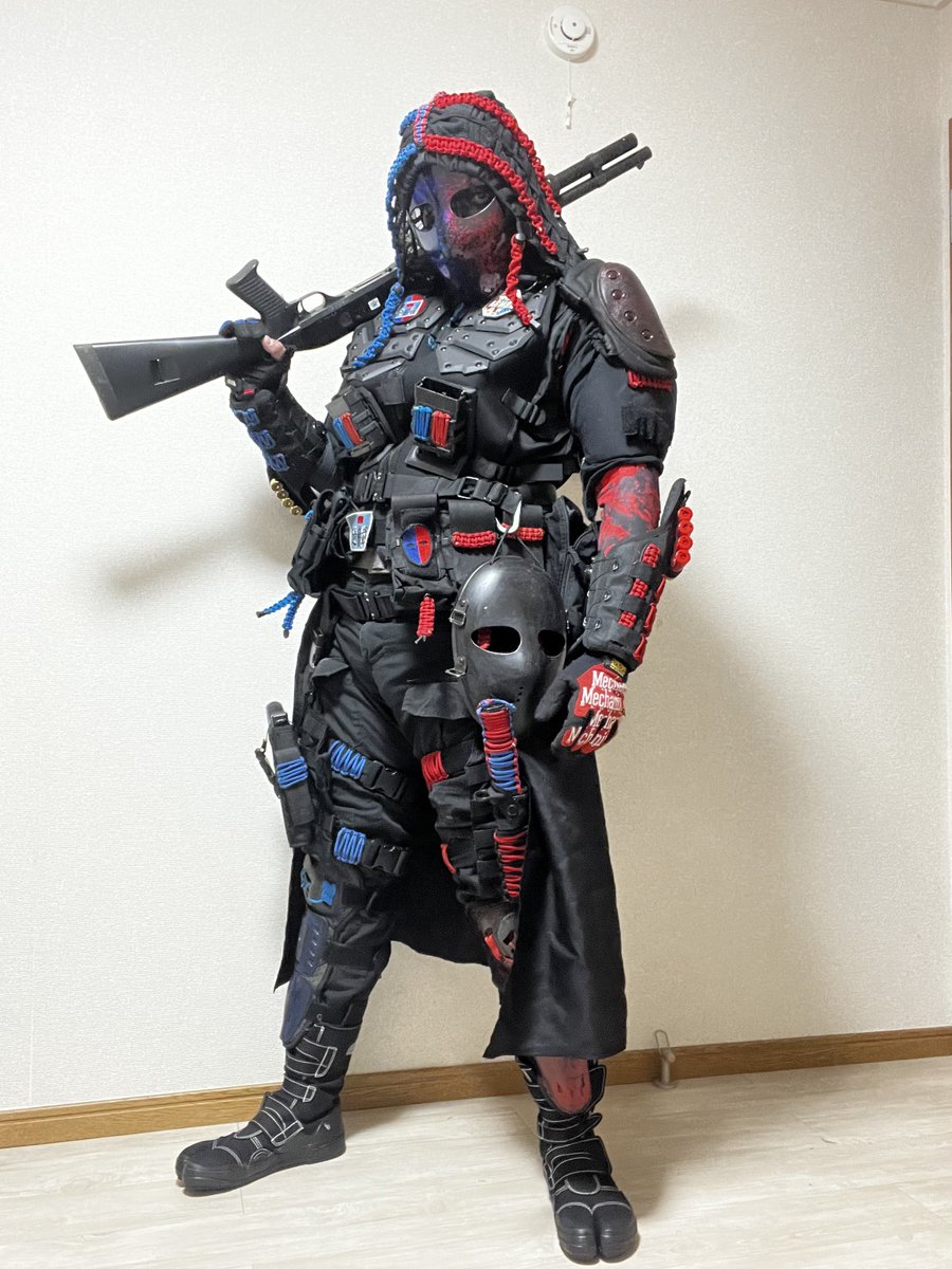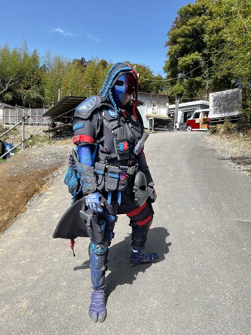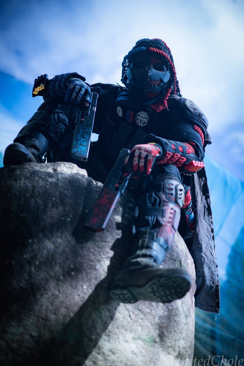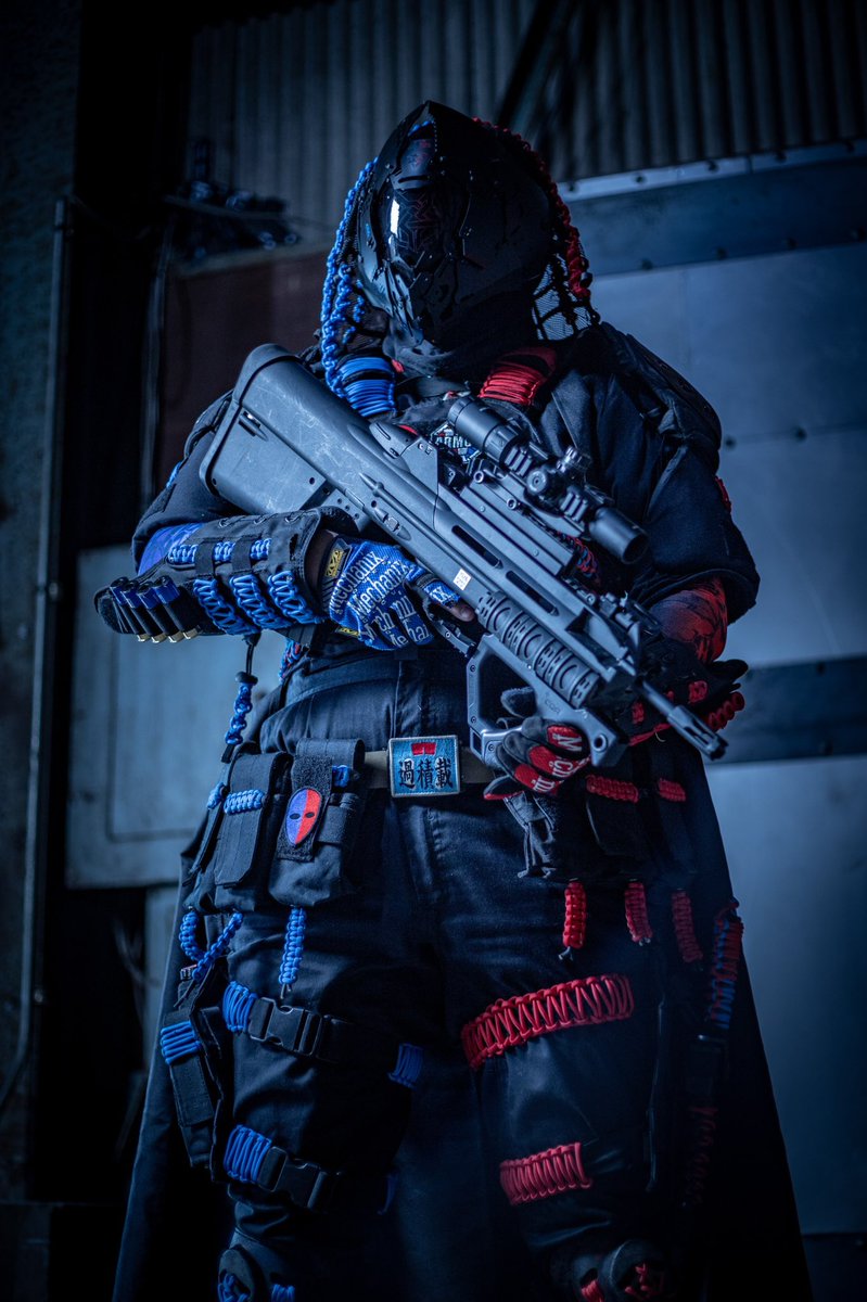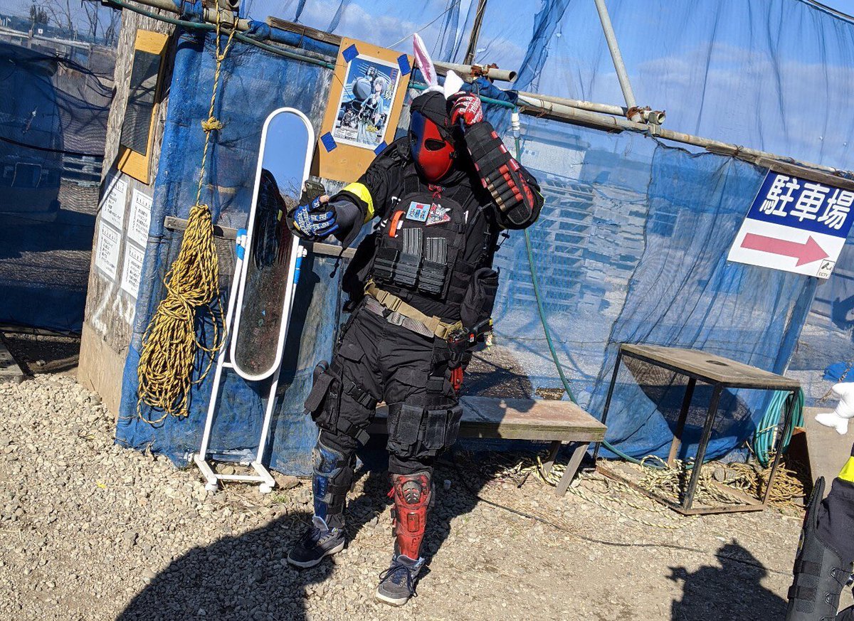 #2月になったのでフォロワーさんに自己紹介しようぜ #美女木廃工場スタジオ #ケブラーマスク と #3Re 被ってカッコいい装備を目指しています。自分の色は赤と青。ダイの大冒険のフレイザードが好きだから 最近はサバゲーより撮影会。 撮影会大好き人間になってます📷 photo by (@kaerukun927 )