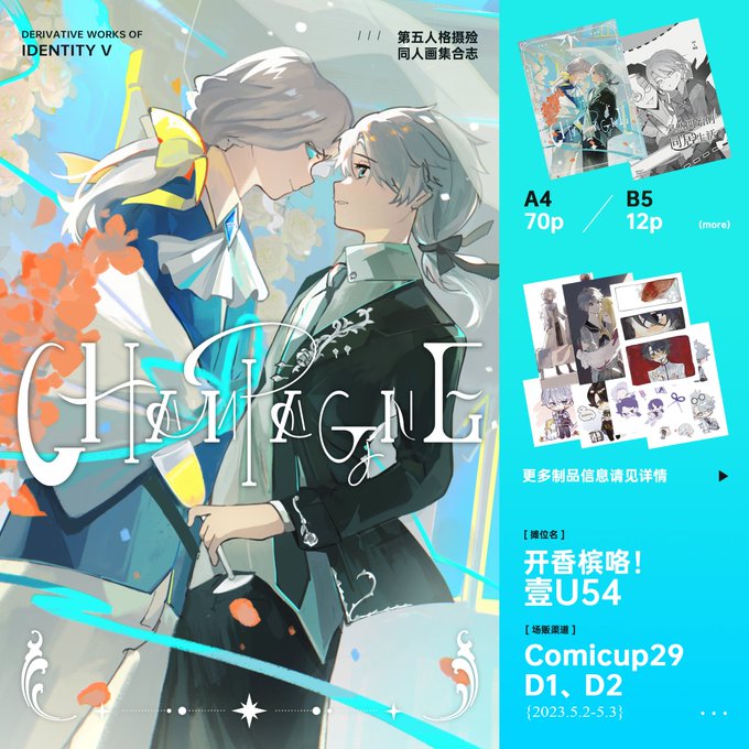 ✨IDENTITY V写納同人合志出展&オンライン販売情報公開! ✨5.2~5.3出展Comicup29 ✨ブース番号:壹U54 ✨5.11始、オンライン販売先は淘宝網:窗分阁 ✨詳細は「LOFTER」kashimabiu.lofter.com/post/1ec982c1_… ✨G図画師:@ttb0505、@aorablu 二人の先生の美しい作品は収録されている💖💖💖ありがとうございます!
