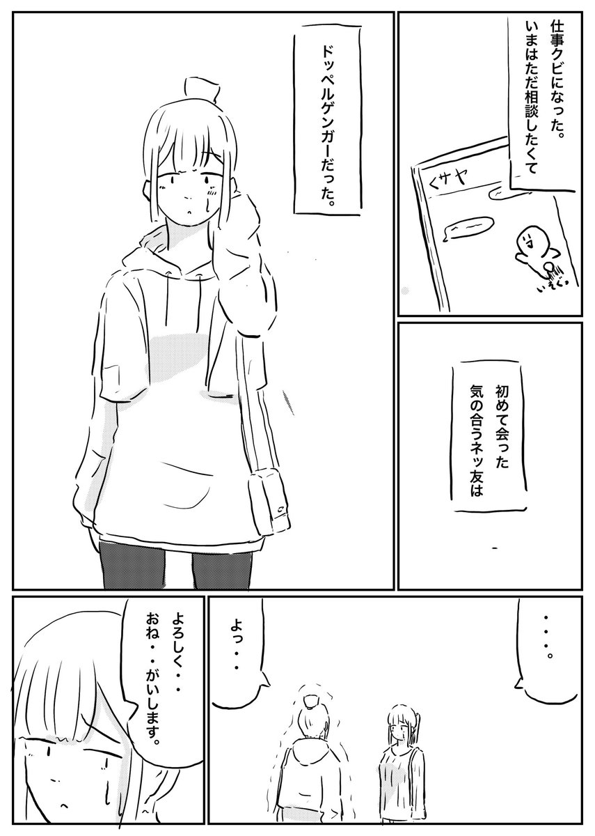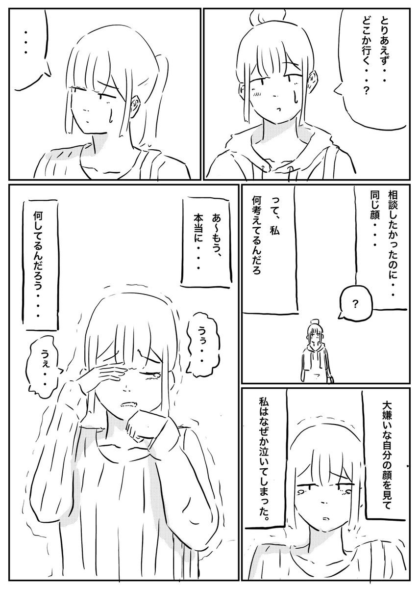 初めて漫画書いてみたよ。いいねRTお願いします。 僕程度の適当な絵でも、死ぬほど大変です。まじ尊敬。 自分嫌いとドッペルゲンガーの話です。 #漫画が読めるハッシュタグ #いいねで気になった人お迎え #イラスト好きな人とつながりたい