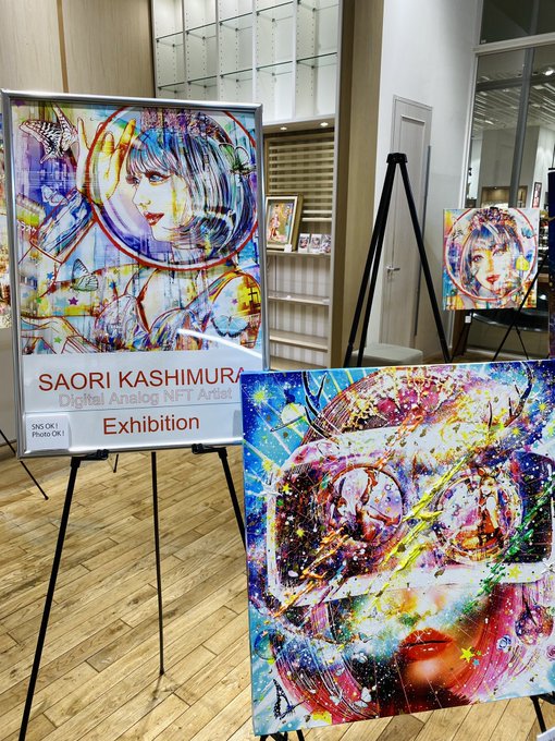 🖼柏村早織里 個展 年末年始に新宿マルイ本館B1 BEAUTY STAND+で開催していただいてる個展が2023年度、明日からスタートです! 明日13:00-17:00在廊予定ですので良かったらお立ち寄りください😊 #アート好きな人と繋がりたい #絵描きさんとつながりたい #artilljp #NFT #newtro #popart #芸術の輪