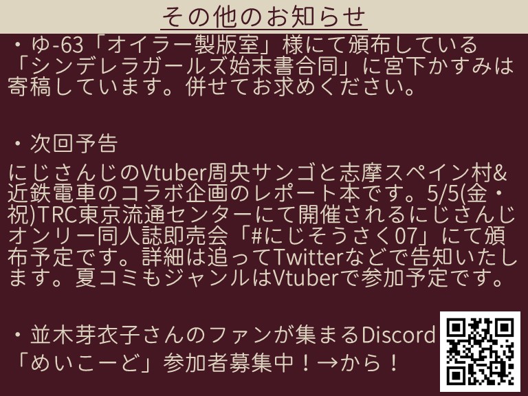 【お知らせ】シンステ新刊二冊目「芽衣子と行く!Special 3Travels!」無事脱稿しました!毎年恒例の芽衣子さんの目線から見た旅行記です。お品書きは今晩中にでも投稿します。 #cin_stage