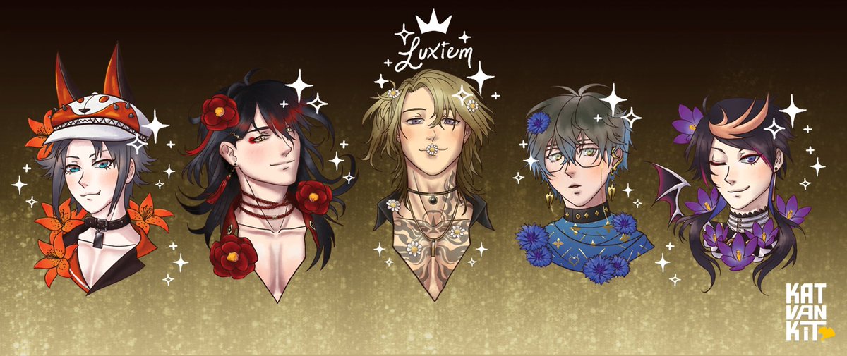 #Luxiem Boys and Flowers 🌹 Mysta- Tiger Lily Vox- Camelia Luca- Chamomile Ike- Cornflower Shu- Purple Crocus #MystArt #Akurylic #drawLuca #Ikenography #YaminoArt