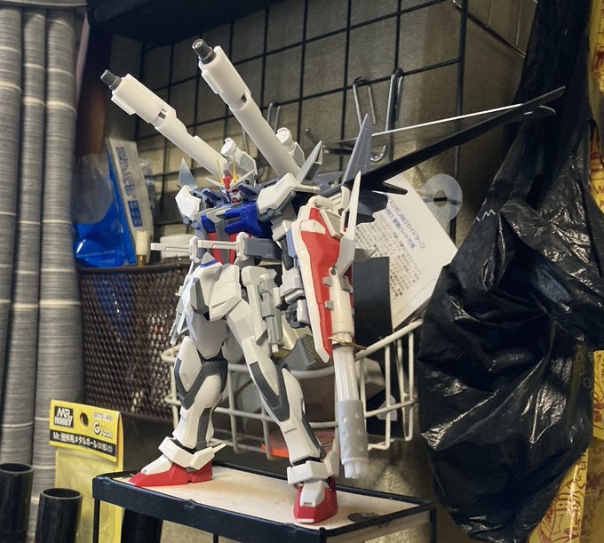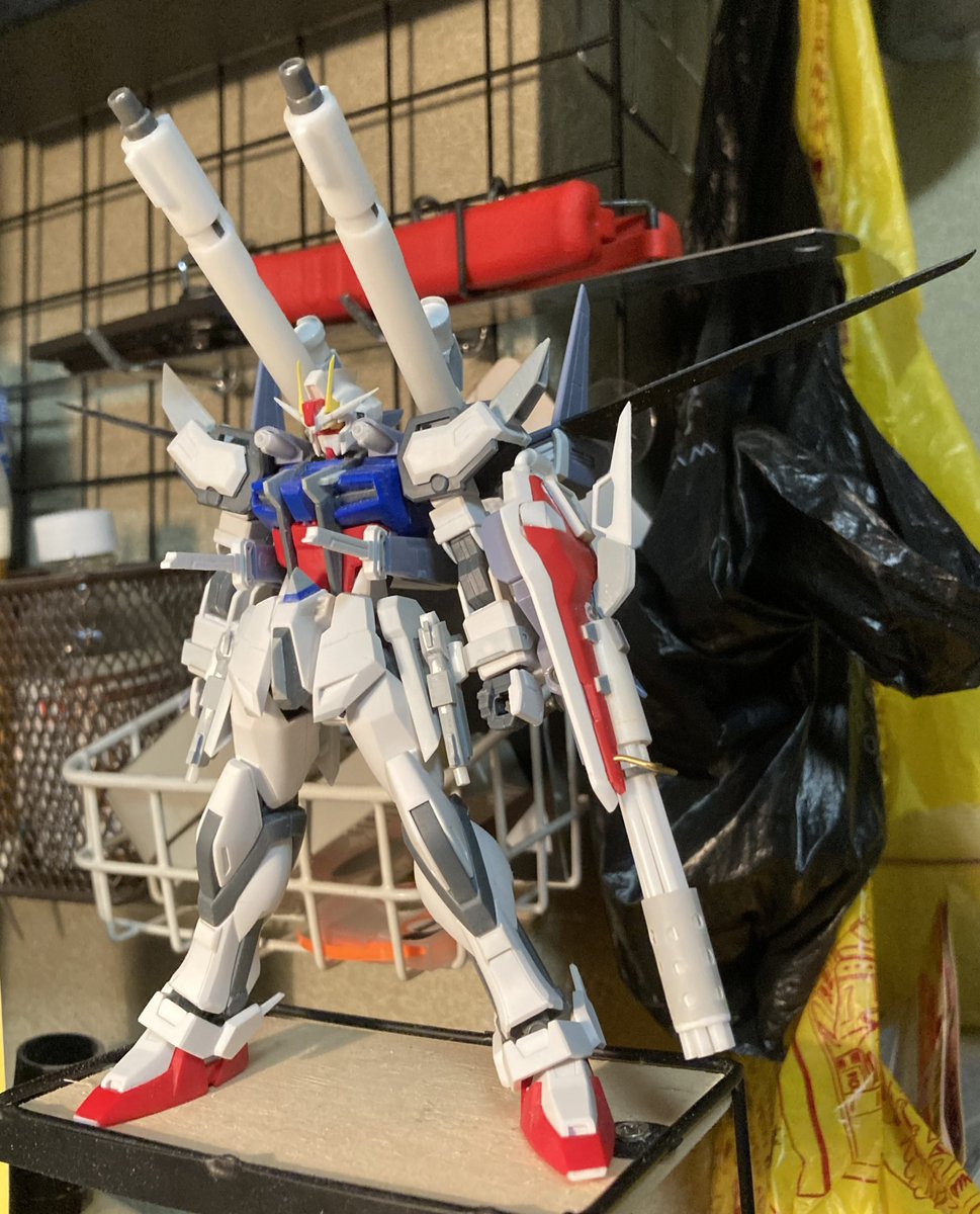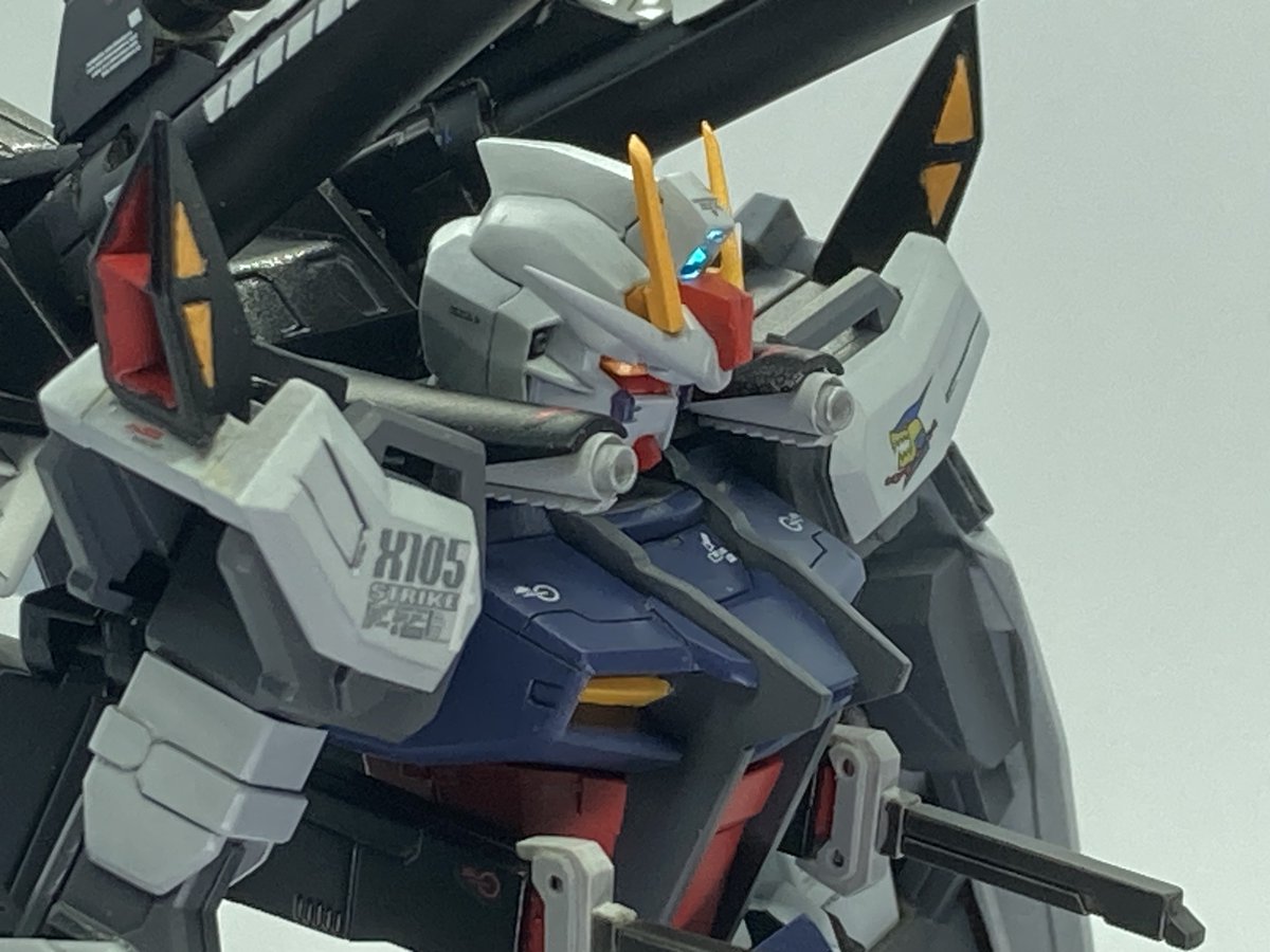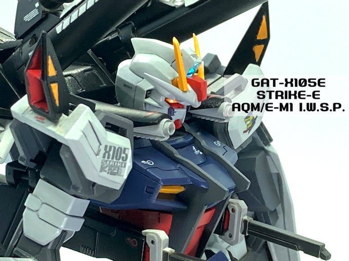 『それがお前の良いところだ』 ストライクE+I.W.S.P(ルカス・オドネル機) 完成しました〜!! EGストライクをベースに制作。HGストライクノワールが手元に無かったのでノワールのパーツ部分は全てスクラッチです( ˙꒳˙ ) #ガンプラ