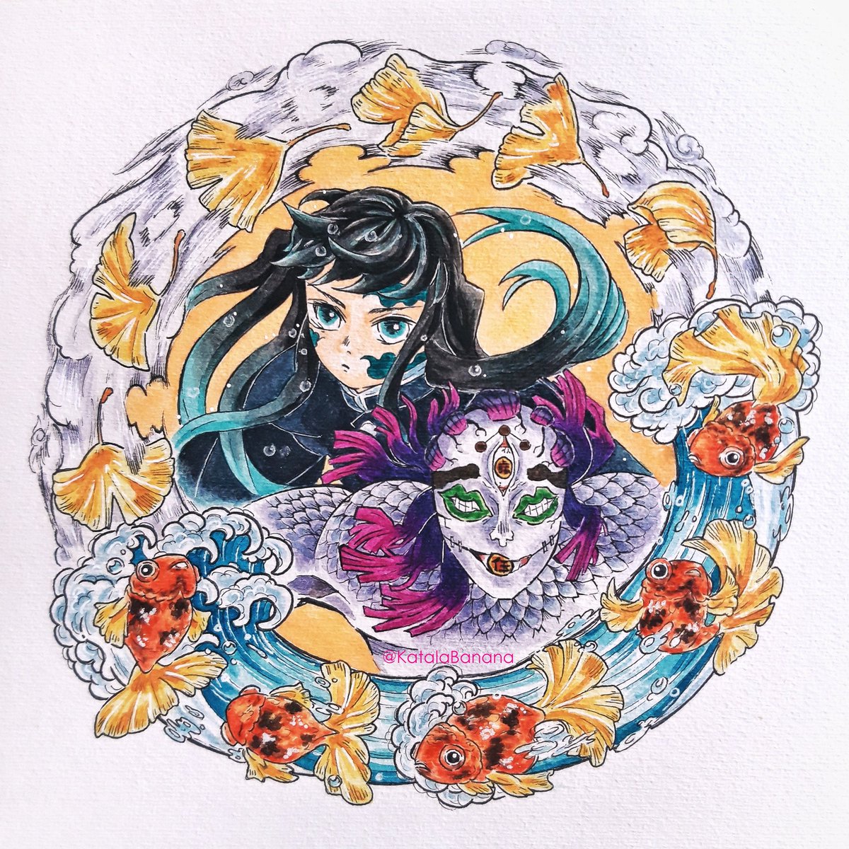 I've finished the lineart (mostly) but I'm not totally sure about the background. I like that there's a better sense of perspective without the hard lines but I'm not sure how I should paint it🤔 {#DemonSlayer #KnY #KimetsuNoYaiba #鬼滅の刃 #鬼滅の刃イラスト #SaneKana #さねカナ}
