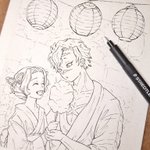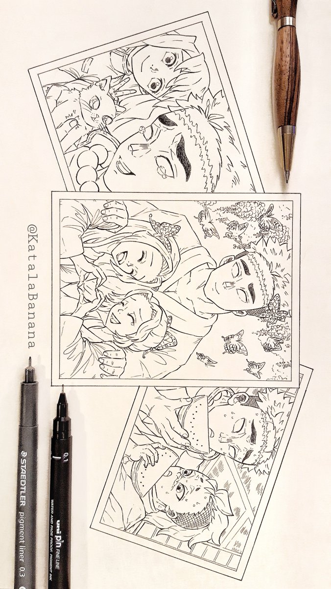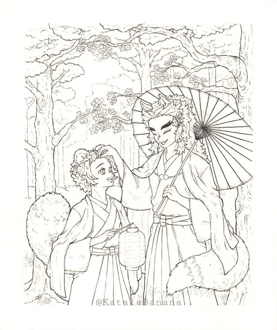 I finished the lineart! It was actually a lot of fun to draw the background and try out my new pens~ 🔥🎴🦝🦊 {#DemonSlayer #鬼滅の刃イラスト #煉炭}