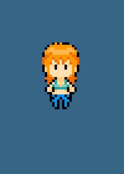 Chciałoby się napisać, że Robin jest łatwa, ale brzmi dziwnie XD. W każdym razie prosta do spikselkowania i oszczędna kolorystycznie, tylko nijak nie da się uzyskać jej wspaniałego wcięcia w pasie przy tak niskiej rozdzielczości. #onepiece #nicorobin #pixelart