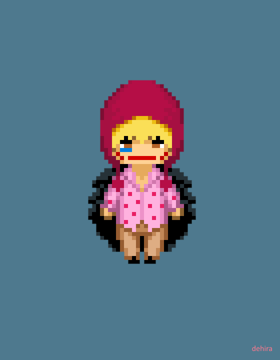 Kulkowy Doflamingo. Wygląda jak nieopierzone pisklę :) #onepiece #doflamingo #donquixote #pixelart #freeforuse