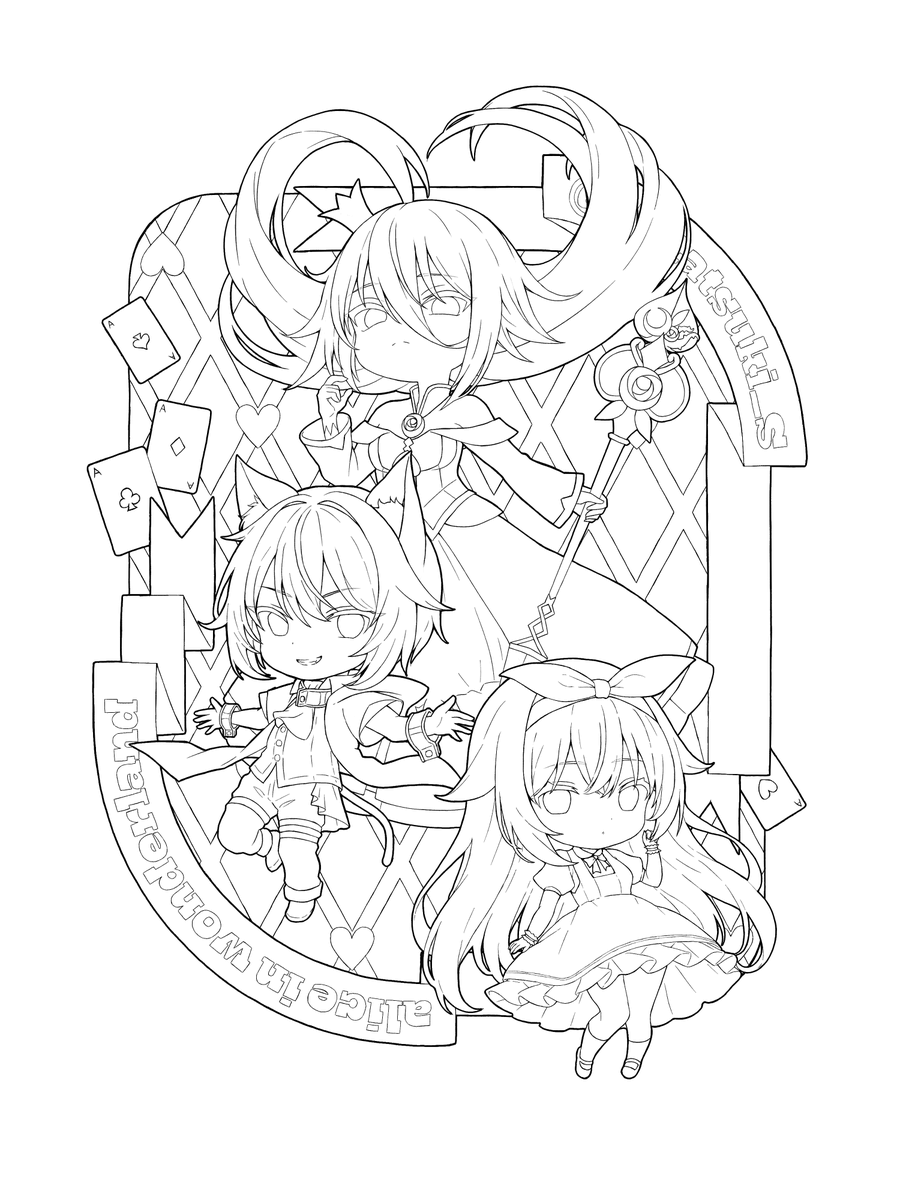 『不思議の国のアリス』モチーフの線画ができたので、よろしければ塗り絵してください!! 🚫自作発言 と 無断での二次配布 はダメです。 メンションしてくれたらひっくり返って喜びます!何卒よしなに🙏 #イラスト #フリー線画