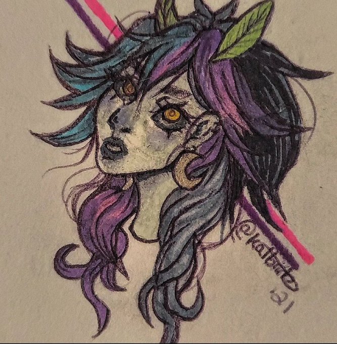 Just a little traditional art 🕸💜 inspired by a pic I took at a Halloween party 🎃 Markers and Gel pens, with a little digital editing #ArtistOnTwitter #stayweird #purple