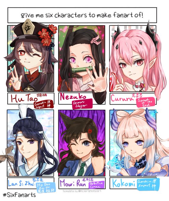 💖6 Fan arts💖 Hope you enjoy! #KateEditzArt #SixFanarts #art #GenshinImapct #demonslayer #SeraphOfTheEnd #MDZS #Detectiveconan individual photos in thread