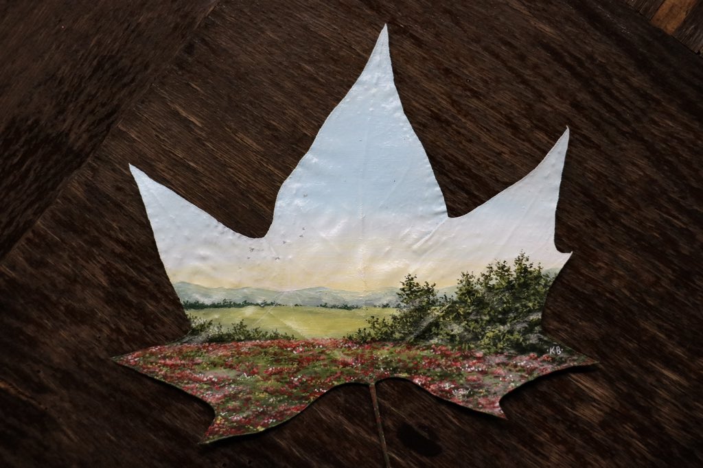 Oooh hey it’s #PortfolioDay again! My name’s Katie and I create paintings on preserved leaves 🌿