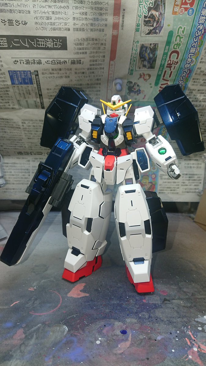 MGヴァーチェ完成😄かなりのボリュームで満足❗今回やりたかったのはガイアノーツのプリズムブルーブラックを使って製作です👍半艶と光沢の混在で統一感が微妙ですが💦あと差し色のグレーが薄かったかな😅 #ガンプラ #ガンダム #ガンプラ好きと繋がりたい #ガンプラの画像貼るとRTされると聞いて