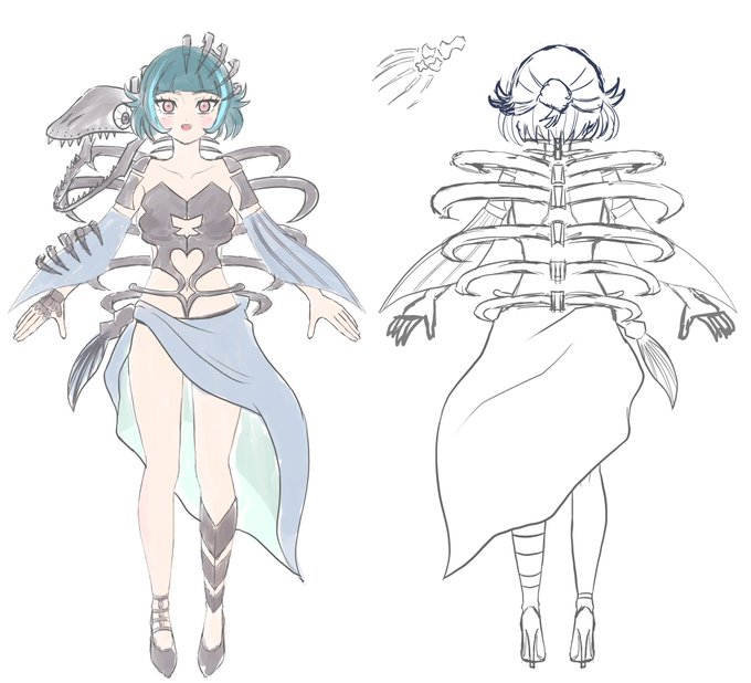 モササウルスのモササコちゃん #イラスト #オリジナル #キャラデザ #オリキャラ #二面図