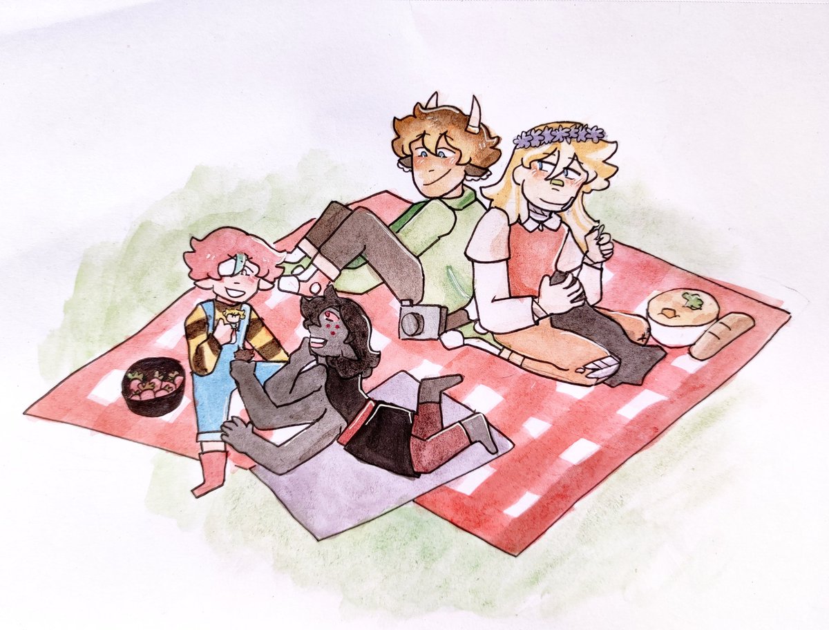 Drawing challenge in October Day 24 PICNIC Just chilling on a sunny day #tomyinnitfanart #tubbofanart #michael_beloved #shroudthespider #dreamsmpfanart