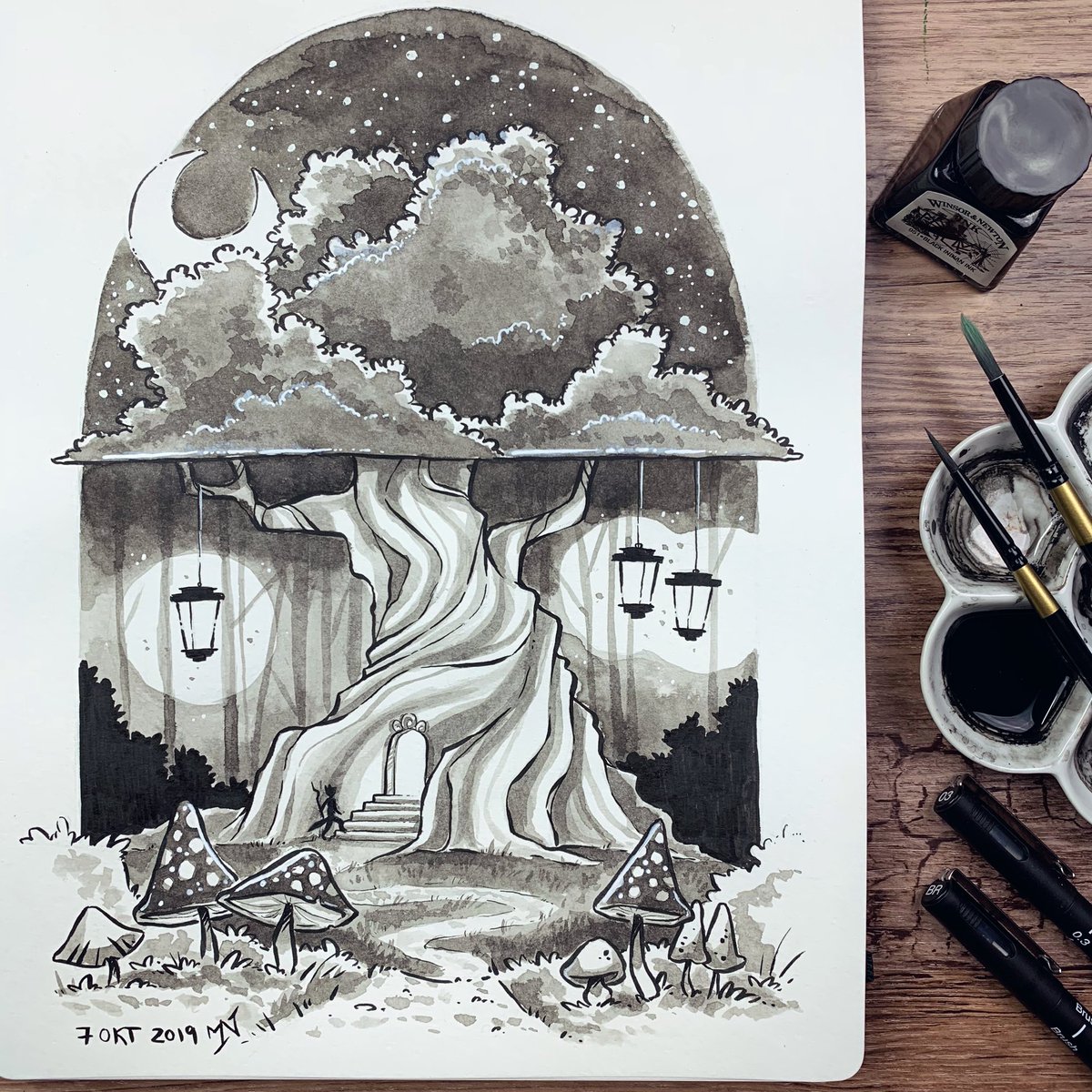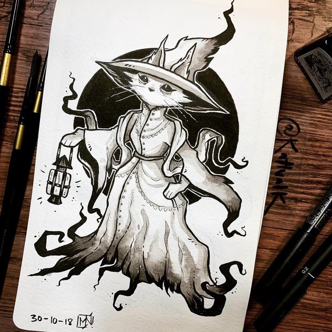 #inktober2018 day 30! I’ve had so much fun with these but I’m so glad it’s almost over 😹 I’m really happy with this one though, inspired by the prompt Ghost witch #inktober #31witches