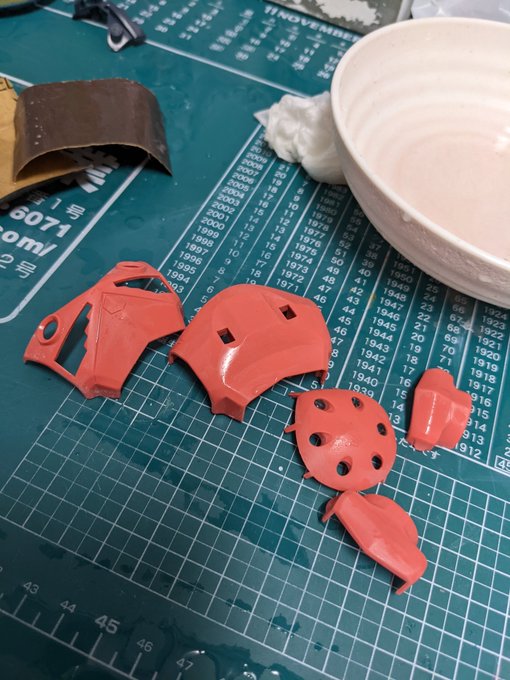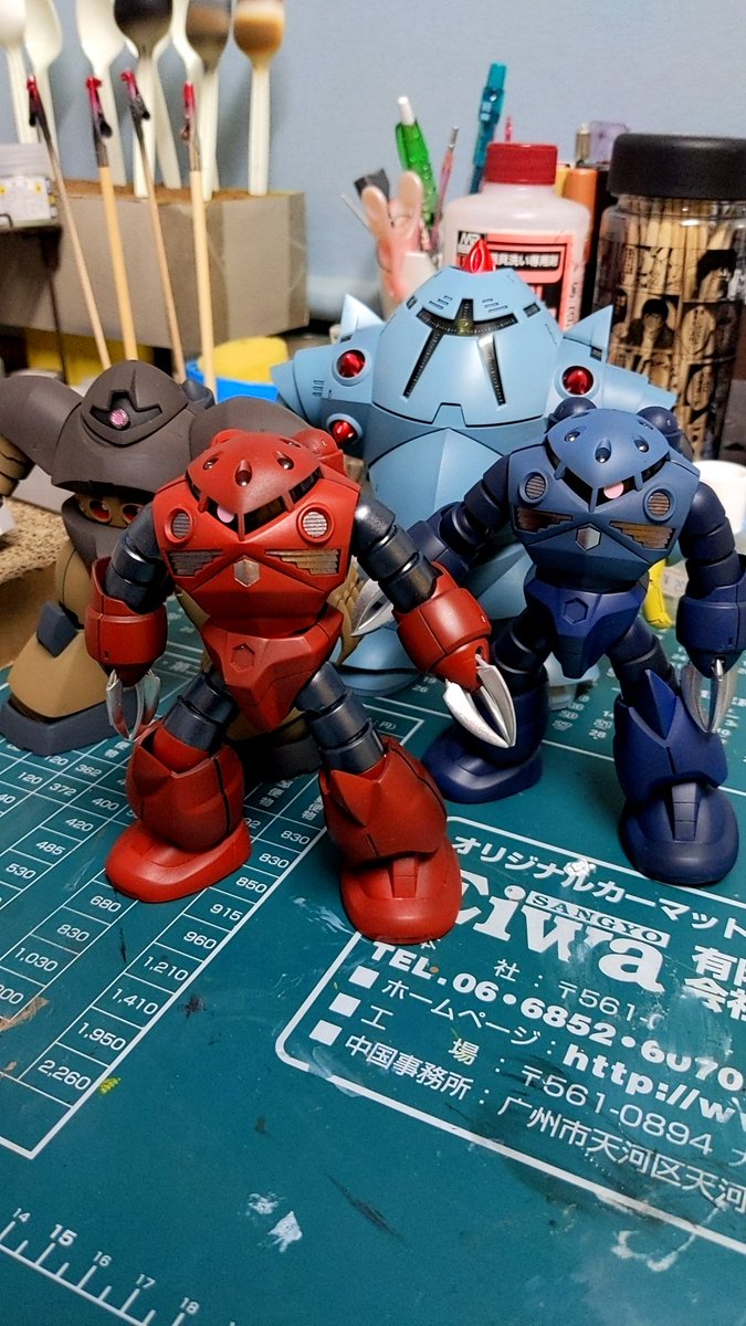 HGシャア専用ズゴック作り始めました。塗料はこの三種類の予定です。それとアイアン・ネイルをメッキシルバーで。今回はトップコートも入れようと思います。しかし水研ぎは楽しいなぁ♥ #ガンプラ #ガンプラの画像貼るとRTされると聞いて