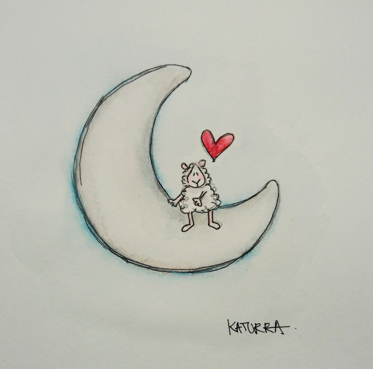 Inktober Day 18 Moon / Luna #inktober2021 #inktober #ilustration #Ilustración #acuarela #luna #moon #ovejas #sheep #dibujo #art #arte #chile #Antofagasta #Santiago