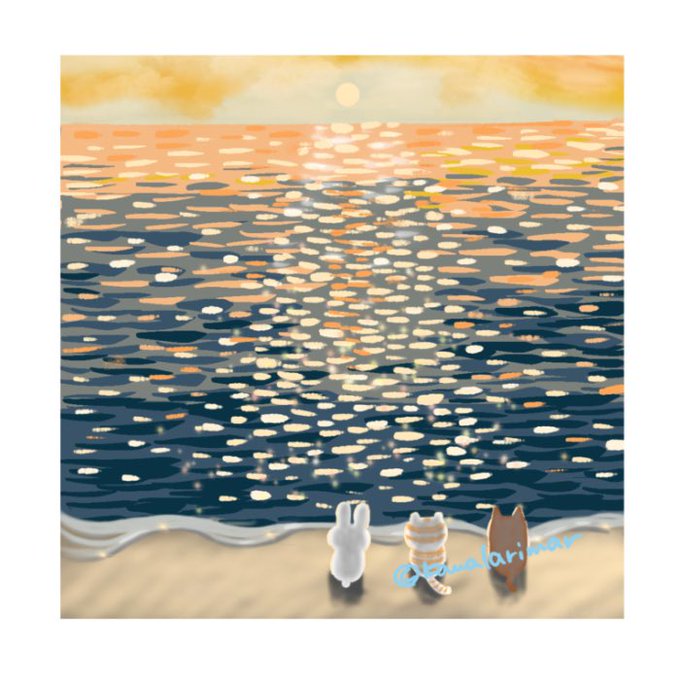 もう夏が終わろうとしていますね #LINEスタンプ キュートな仲良しトリオ line.me/S/sticker/2008… カワラリマーショップ #suzuri suzuri.jp/kawalarimar/om… #イラスト好きな人と繋がりたい #海 #夕日 #夏の終わり