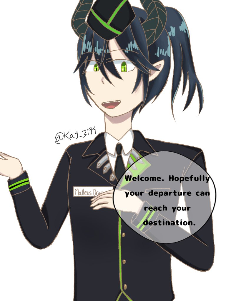 I drew a picture of Malleus wearing a flight attendant outfit, after I saw Malleus' outfit at a recent MasterChef event that looked like a flight attendant. #twstファンアート