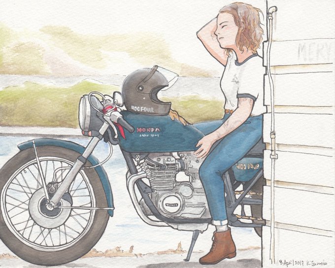 #お前らの好きなXを挙げてけ Yamaha XJR1300 そういえばペケジェーアールを描いたことがなかったと思い描いてみた。 大型教習の時にお世話になり、何の疑問も抱かなかったのですが、教習最後の方にNC750に機種改変があって 「ペケジェーって重!」 とか思ったんだった。 #inktense #インクテンス