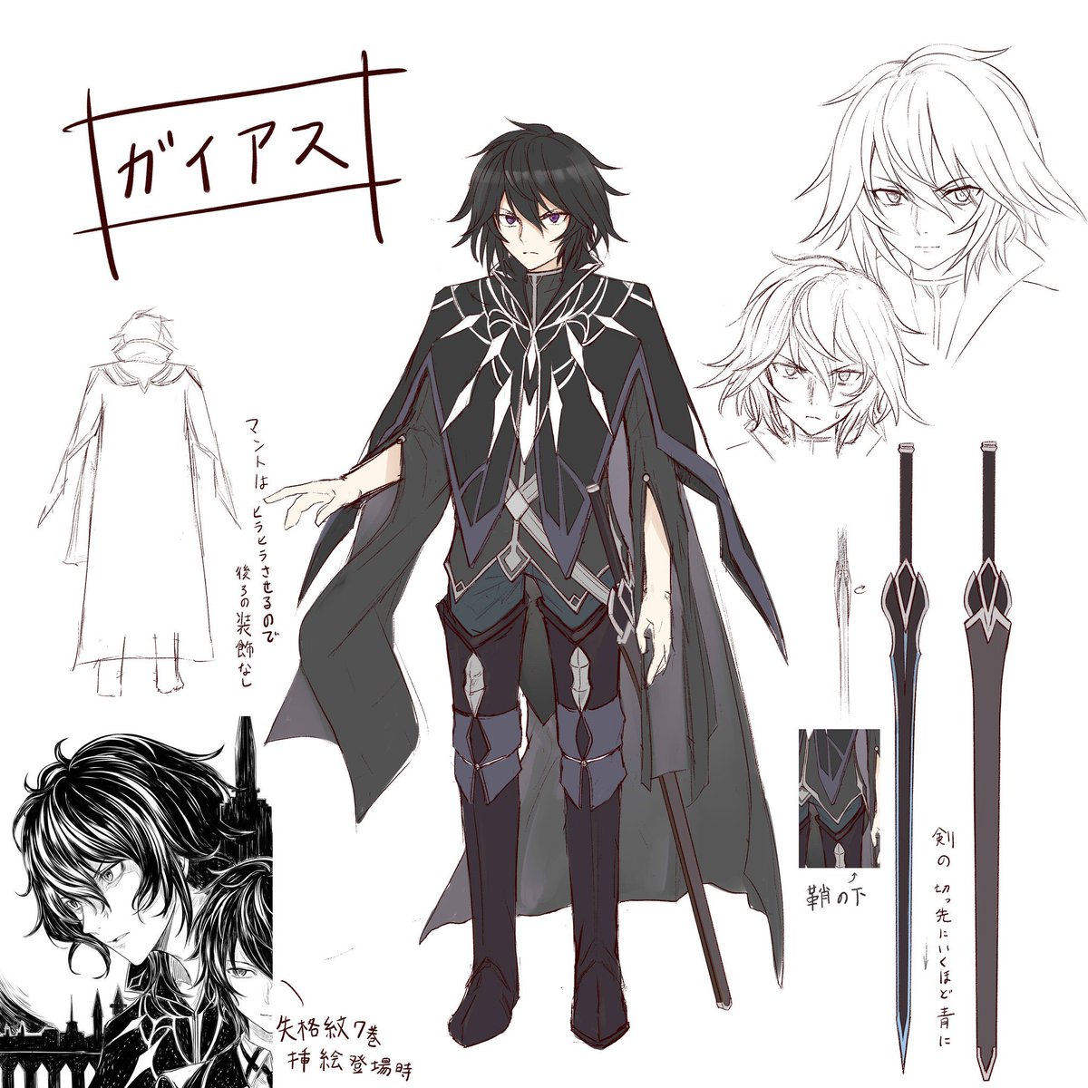 紋章を構成するひし形は失格紋の世界において魔術の象徴…ということで、マティアスの前世時代(殲滅のやつ)のガイアスの衣装は、そのひし形を模様として多く使った外套にしてます。魔術が隆盛した世界の象徴だから…的な感じで。