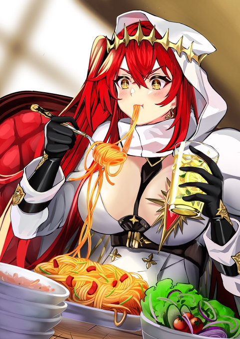 Out having lunch with Pact, watching her happily gobble them 🥰 Although, I’m really starting to worry about the bill 😅 Art done by @Exillust_ tysm again for doing this ^^ #AlchemyStars#FANART#白夜極光